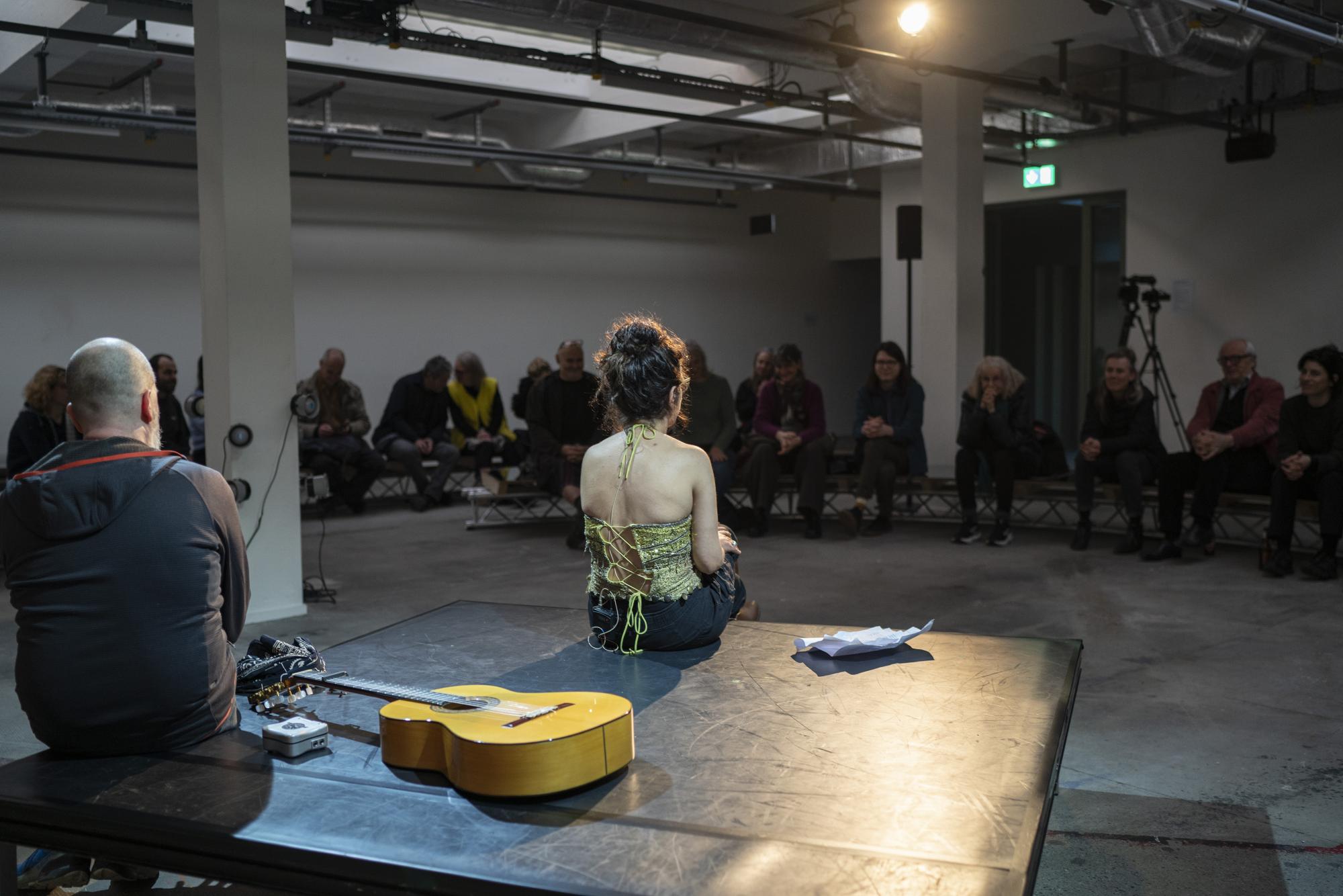 Lecture de Aménorrhée de Sarah Haidar par Barbara Baker et le guitariste Vincent Hänni