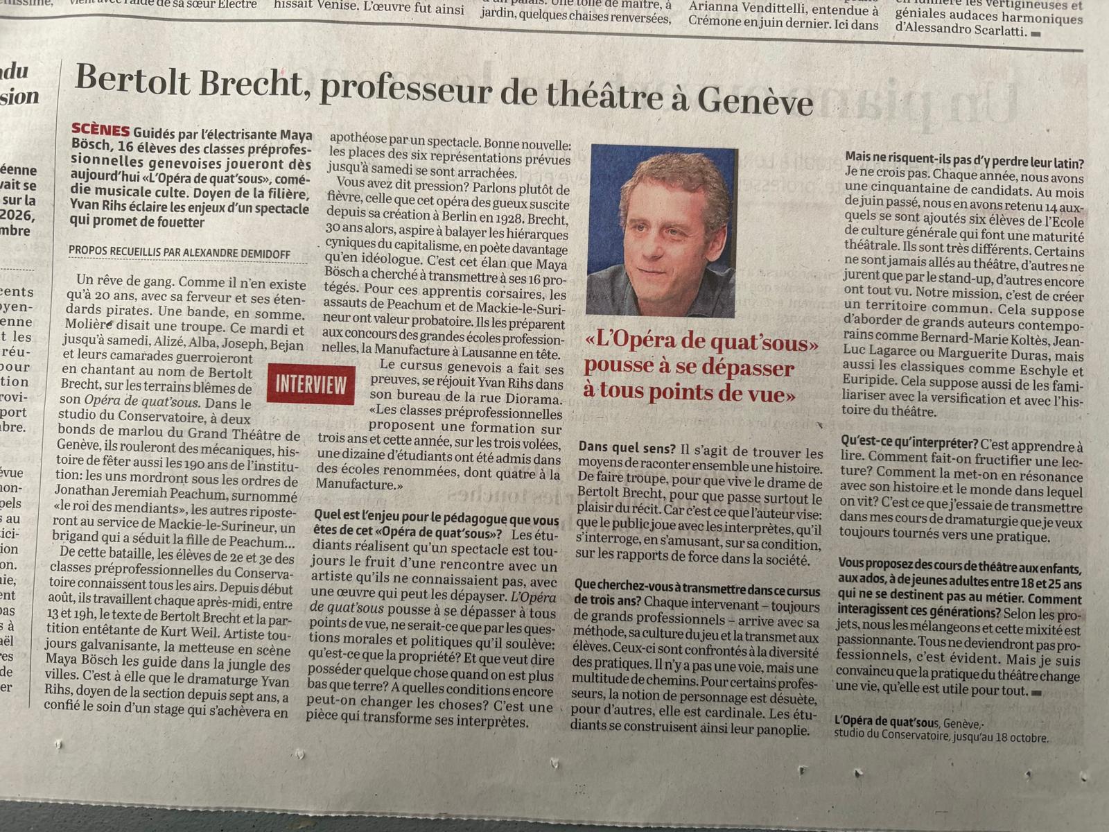 Production : CMG, classes d’art dramatiques, sous la direction d'Yvan Rihs.